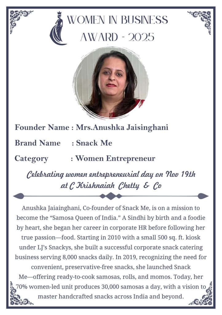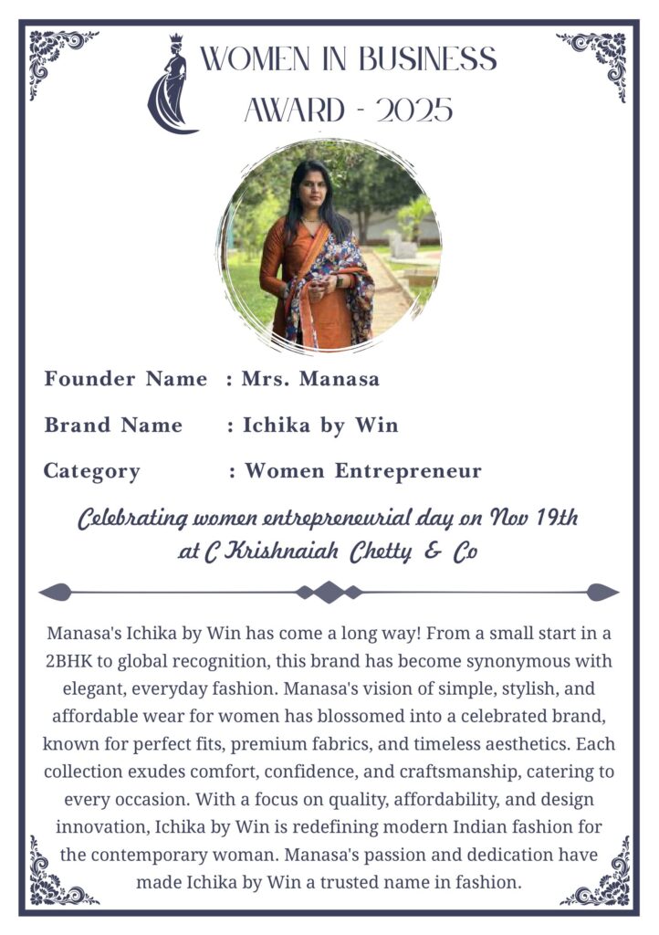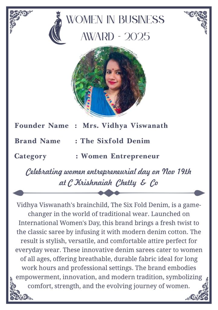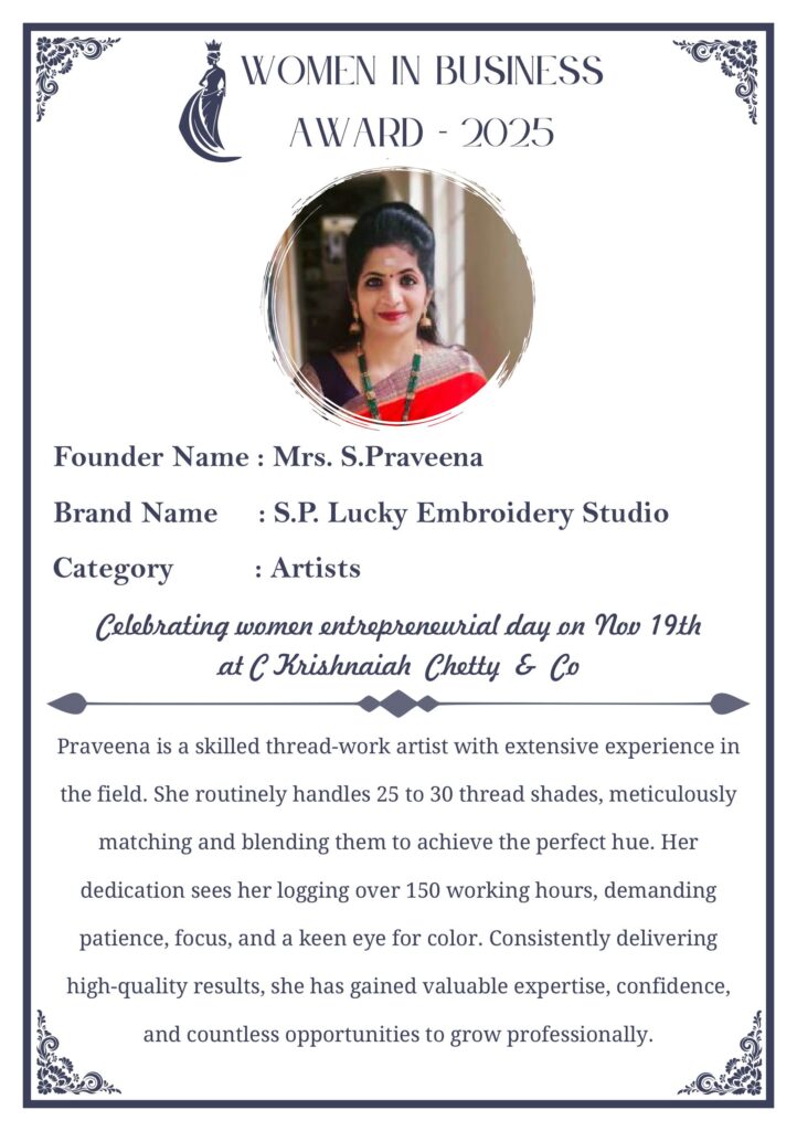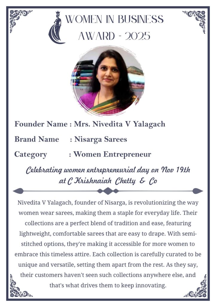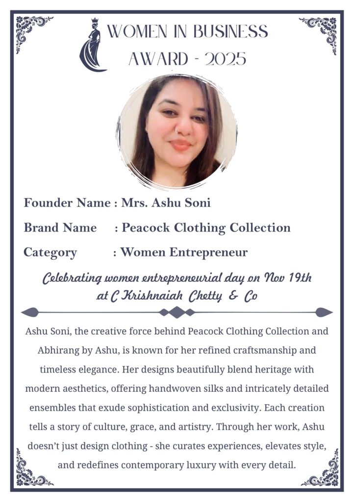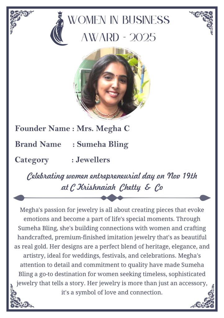 C KRISHNIAH CHETTY & CO. – EDITION 1 Celebrated Women’s Entrepreneur Day | 19 Nov 2025 | C.K.C. Jewellery Premises Women In Business Award 2025 C KRISHNIAH CHETTY & CO. – EDITION 1