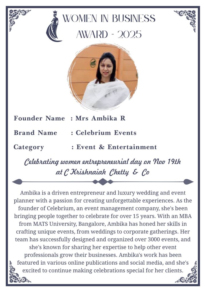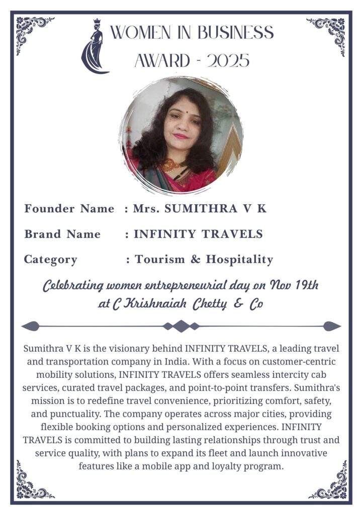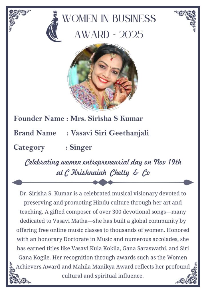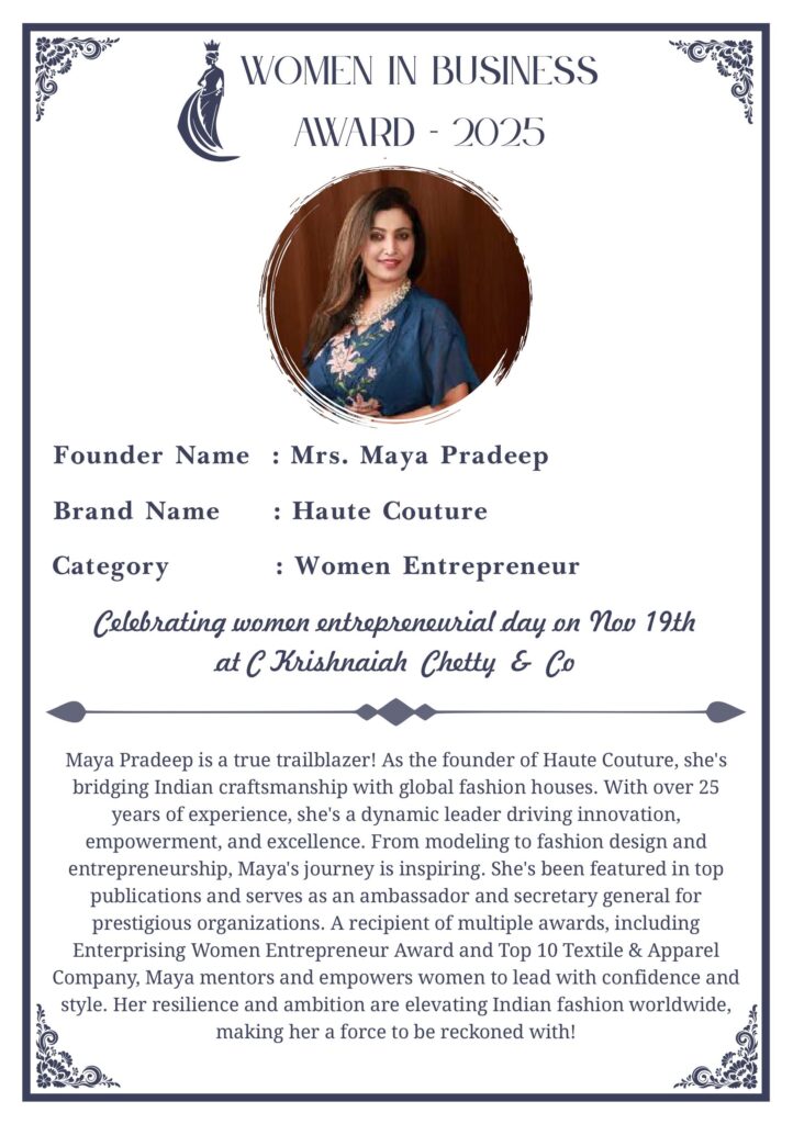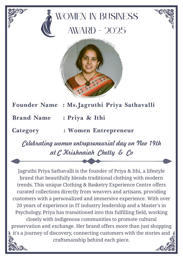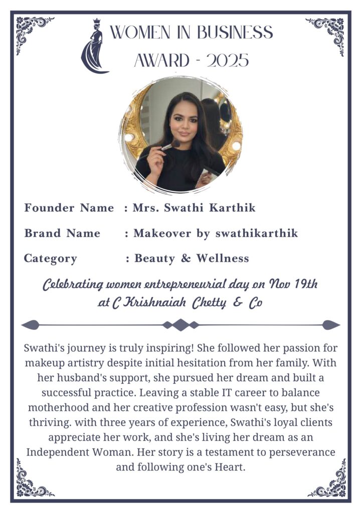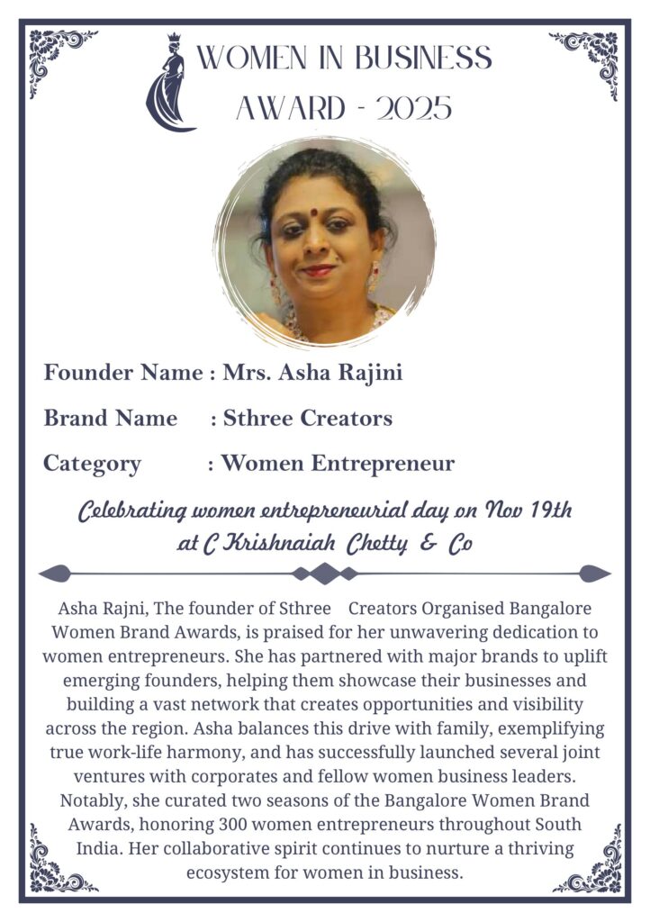 C KRISHNIAH CHETTY & CO. – EDITION 1 Celebrated Women’s Entrepreneur Day | 19 Nov 2025 | C.K.C. Jewellery Premises Women In Business Award 2025 C KRISHNIAH CHETTY & CO. – EDITION 1