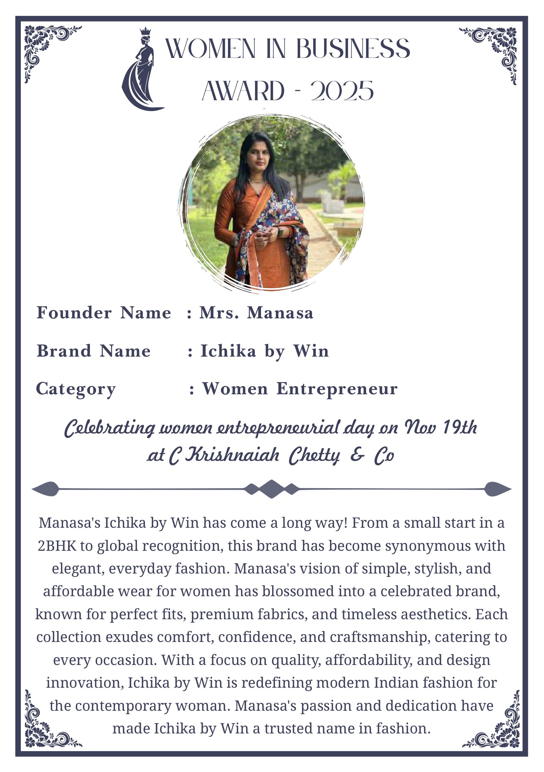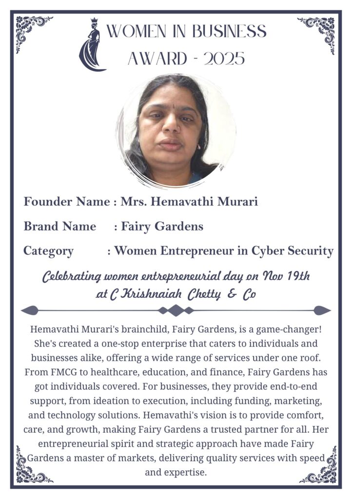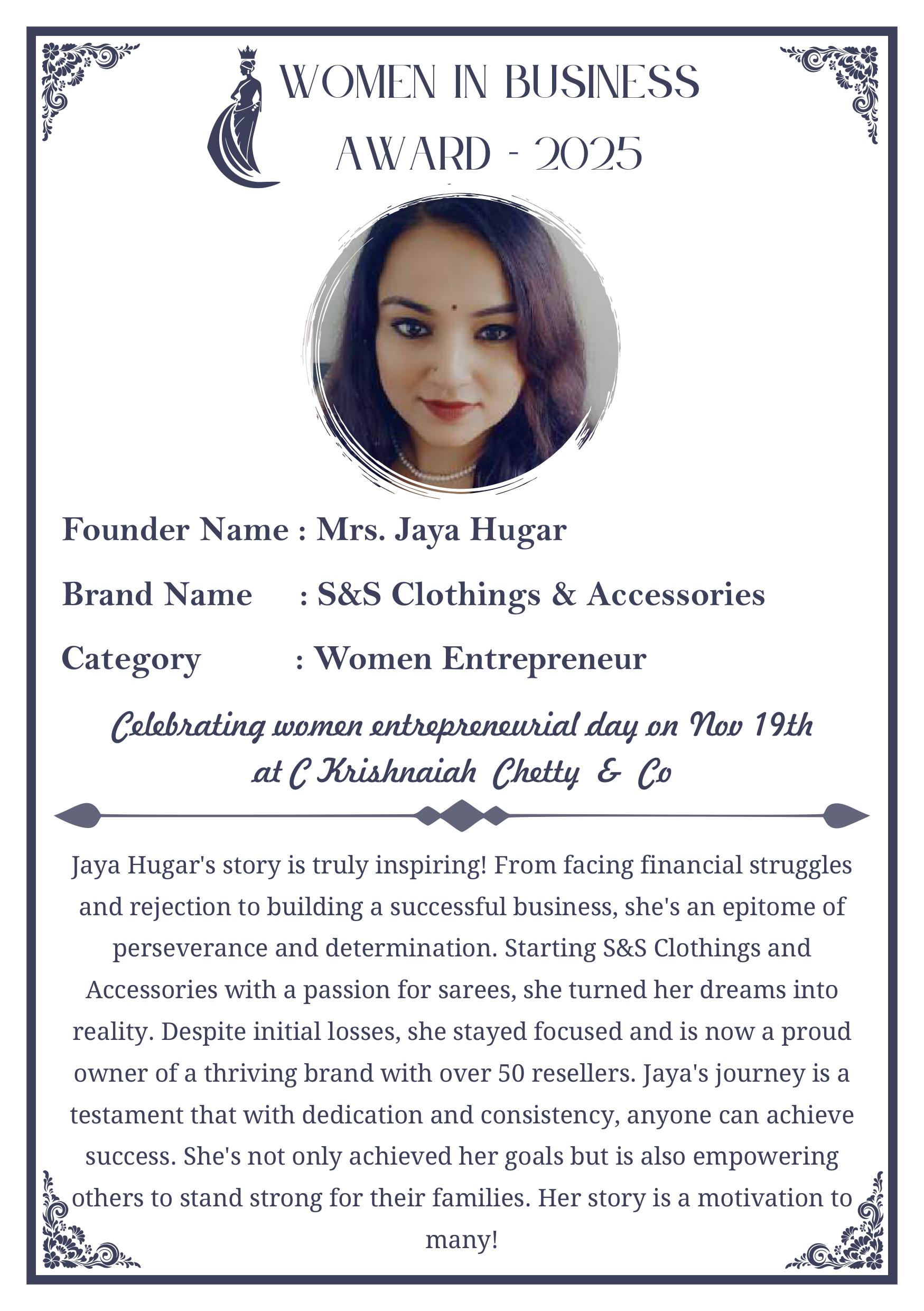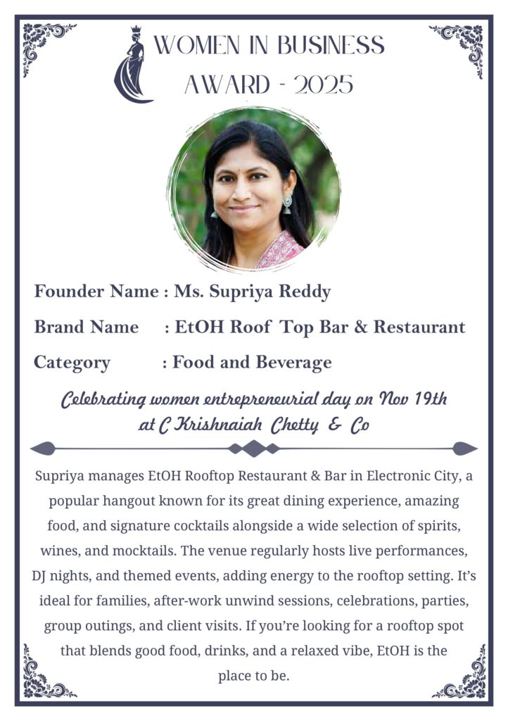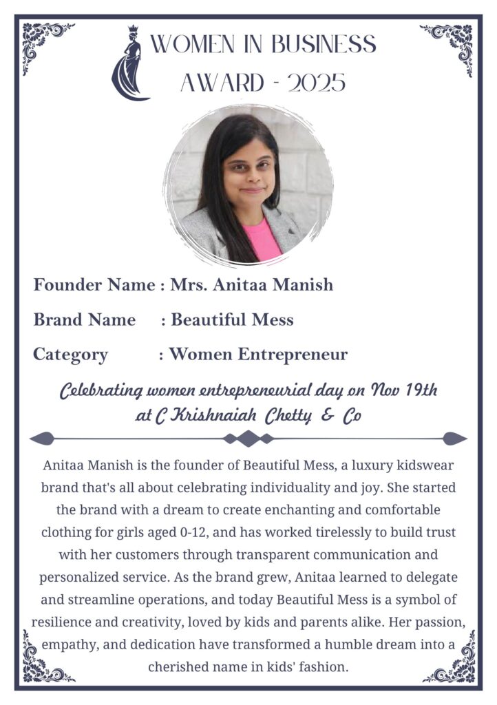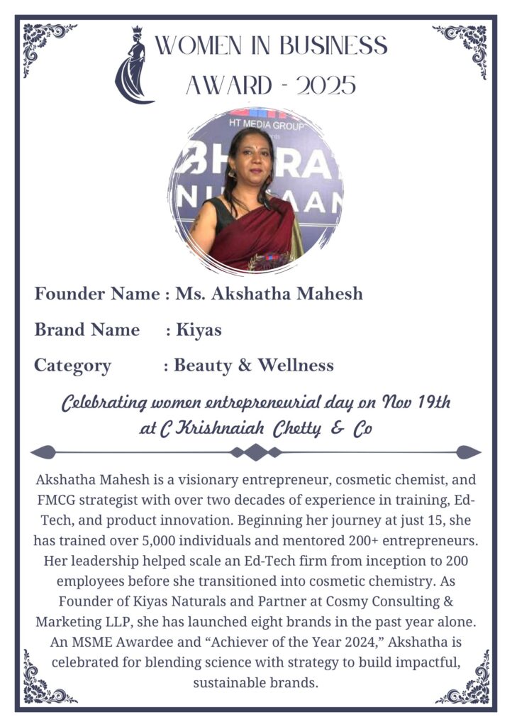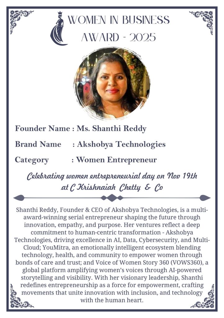 C KRISHNIAH CHETTY & CO. – EDITION 1 Celebrated Women’s Entrepreneur Day | 19 Nov 2025 | C.K.C. Jewellery Premises Women In Business Award 2025 C KRISHNIAH CHETTY & CO. – EDITION 1