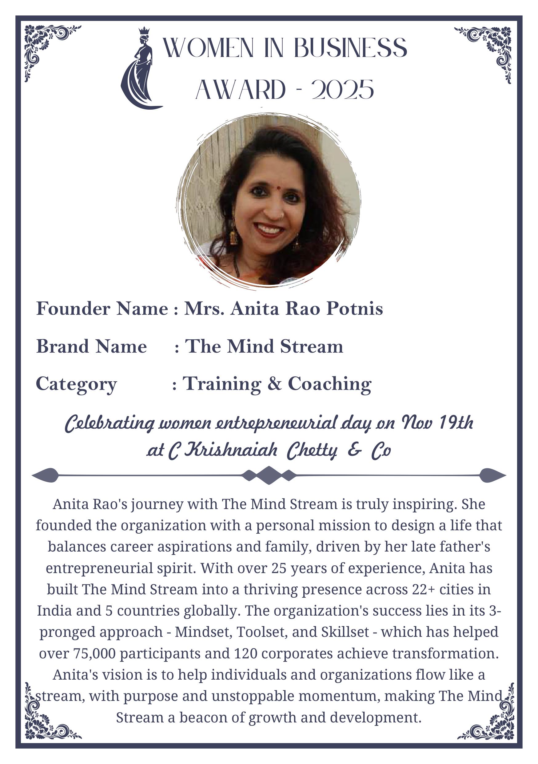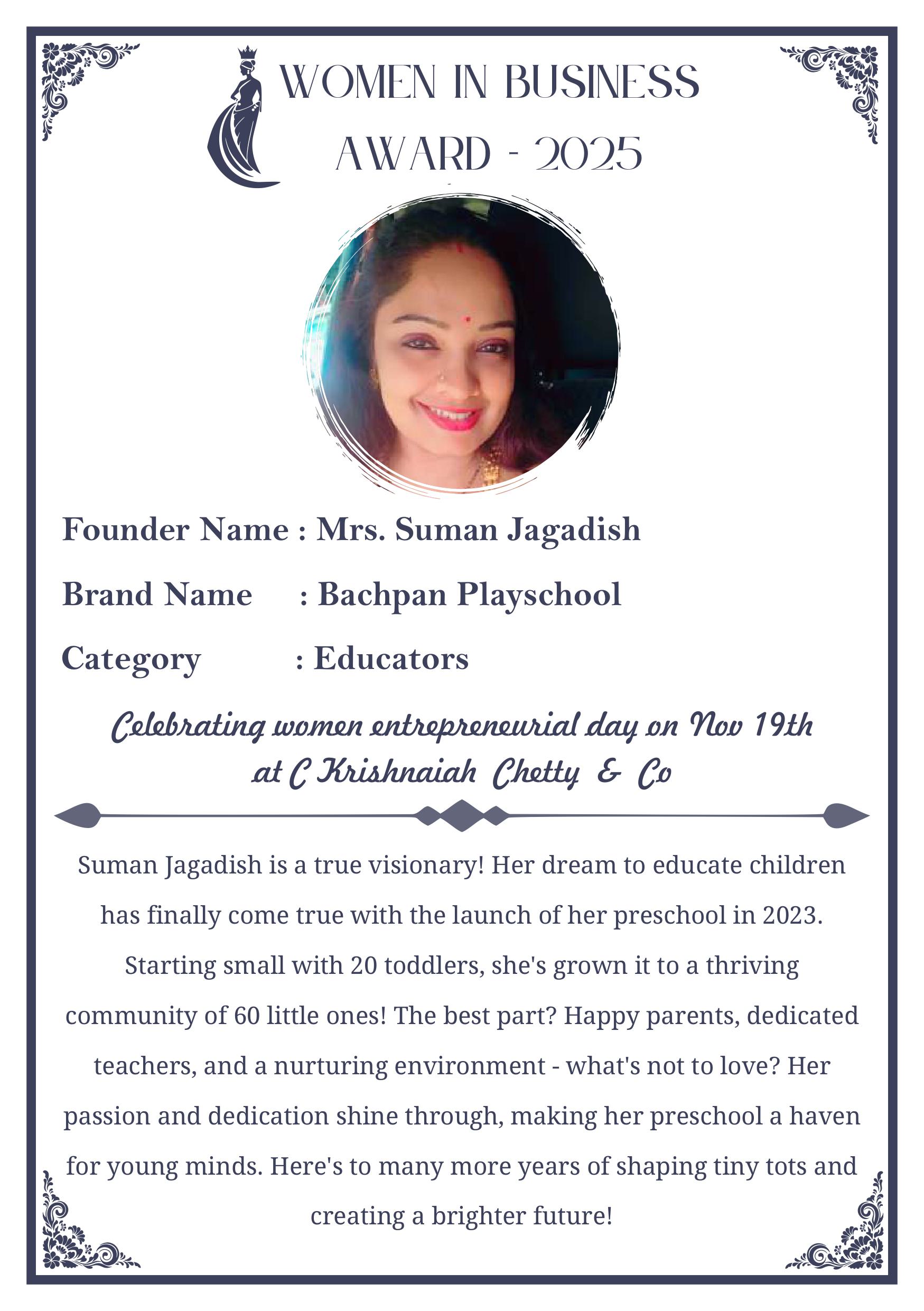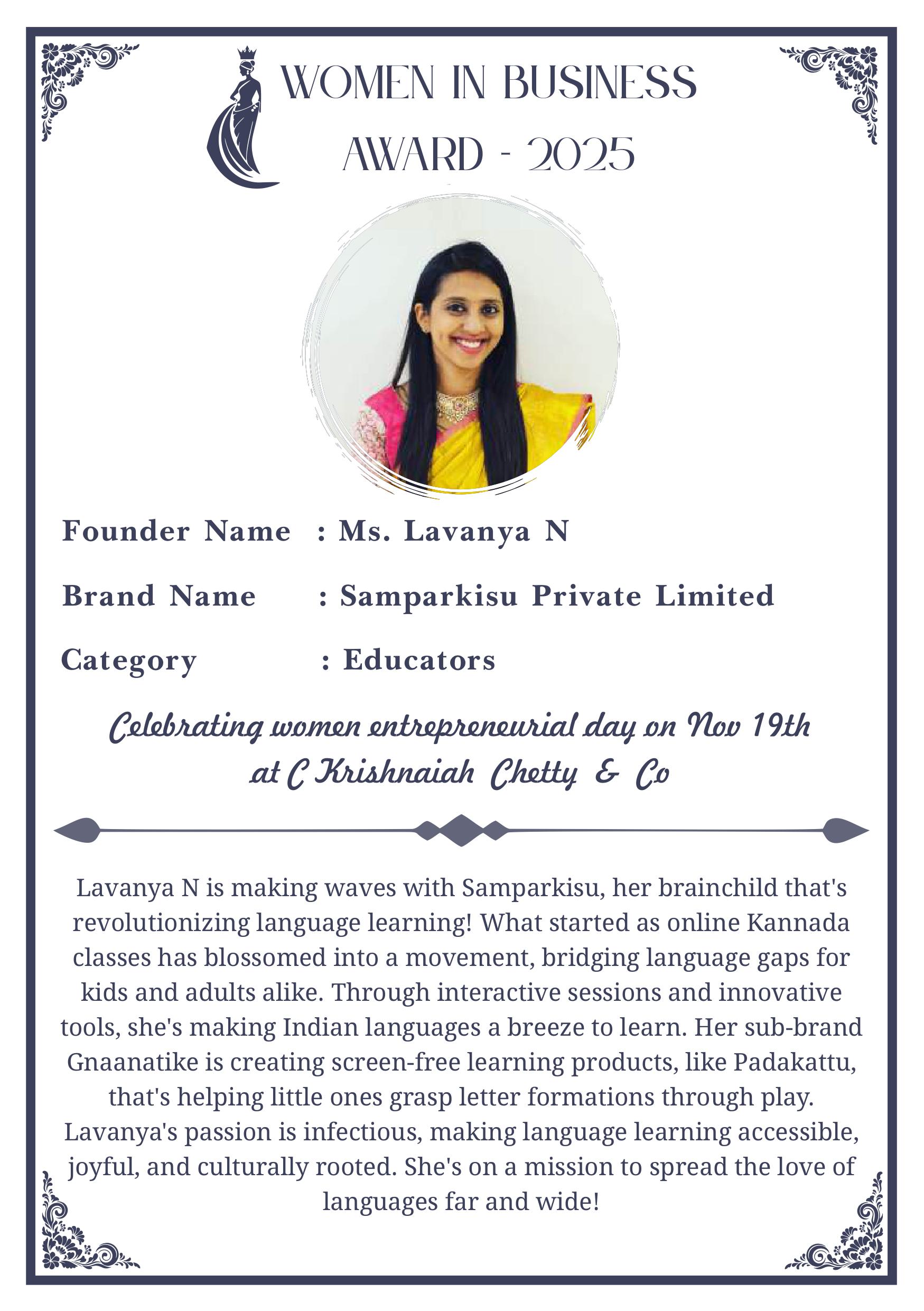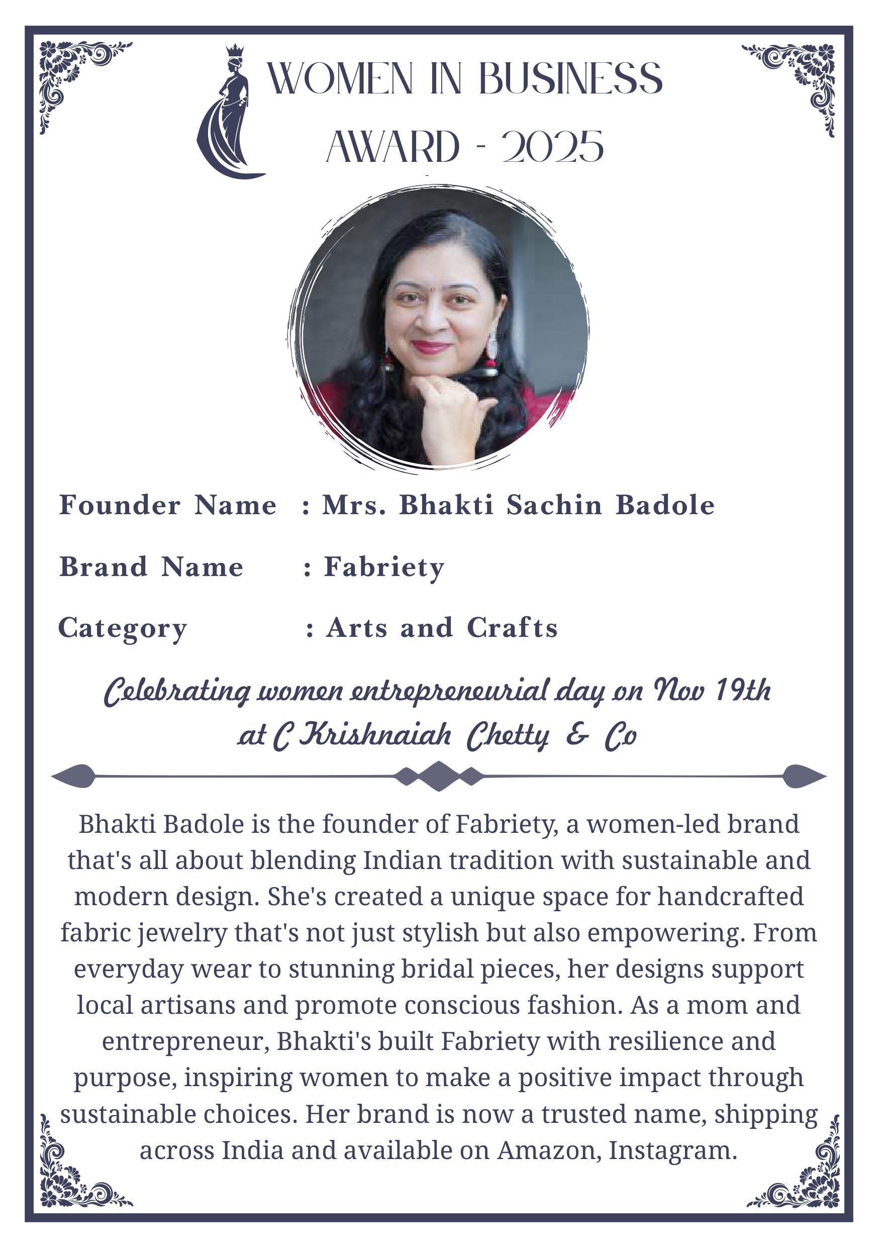 C KRISHNIAH CHETTY & CO. – EDITION 1 Celebrated Women’s Entrepreneur Day | 19 Nov 2025 | C.K.C. Jewellery Premises Women In Business Award 2025 C KRISHNIAH CHETTY & CO. – EDITION 1